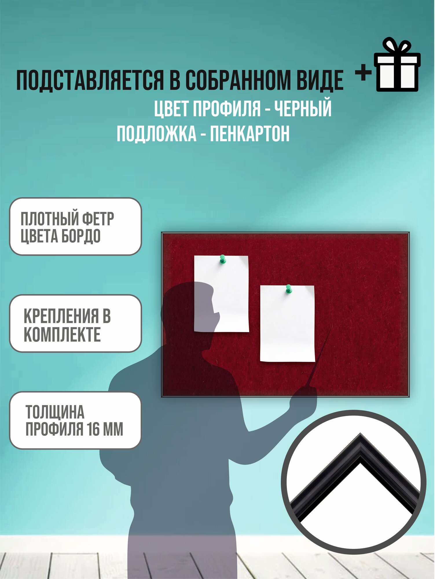 Отзывы на Доска фетровая текстильная информационная для заметок, фото, объявлений в алюминиевой черной раме 89х59 см