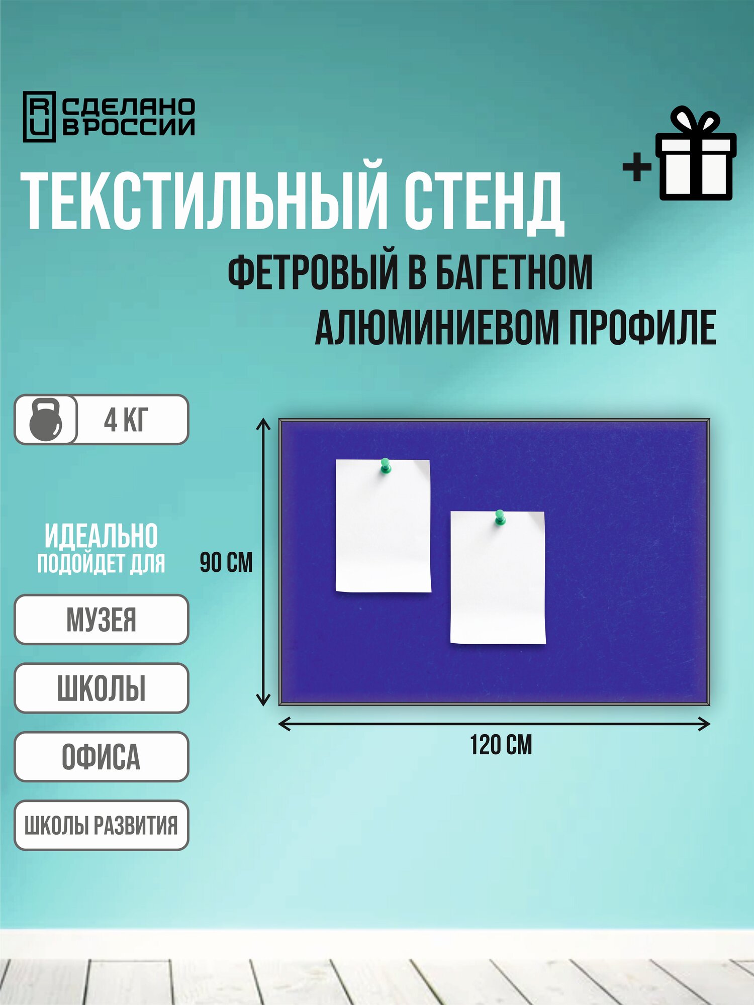 Доска из фетра текстильная информационная для заметок, фото, в алюминиевой черной раме 90х120 см информация:
