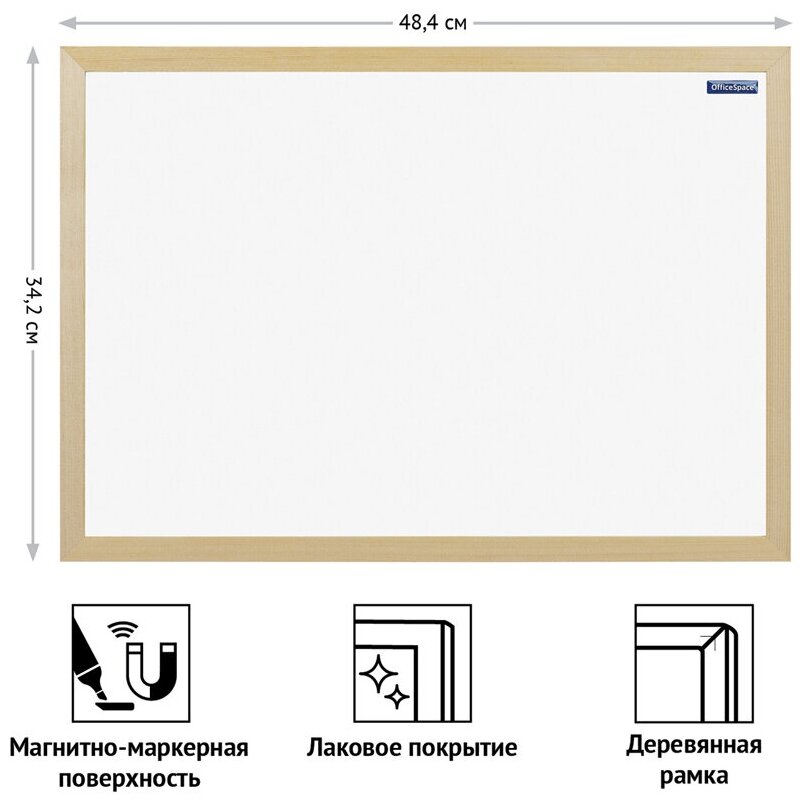 Доска магнитно-маркерная OfficeSpace, А3 (342*484мм), деревянная рамка информация: