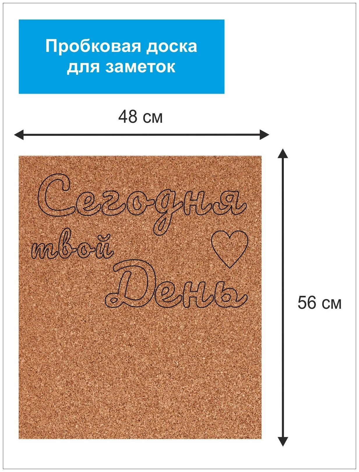 Пробковая доска "Твой день" на стену 56х48см, без рамки на вспененной основе информация: