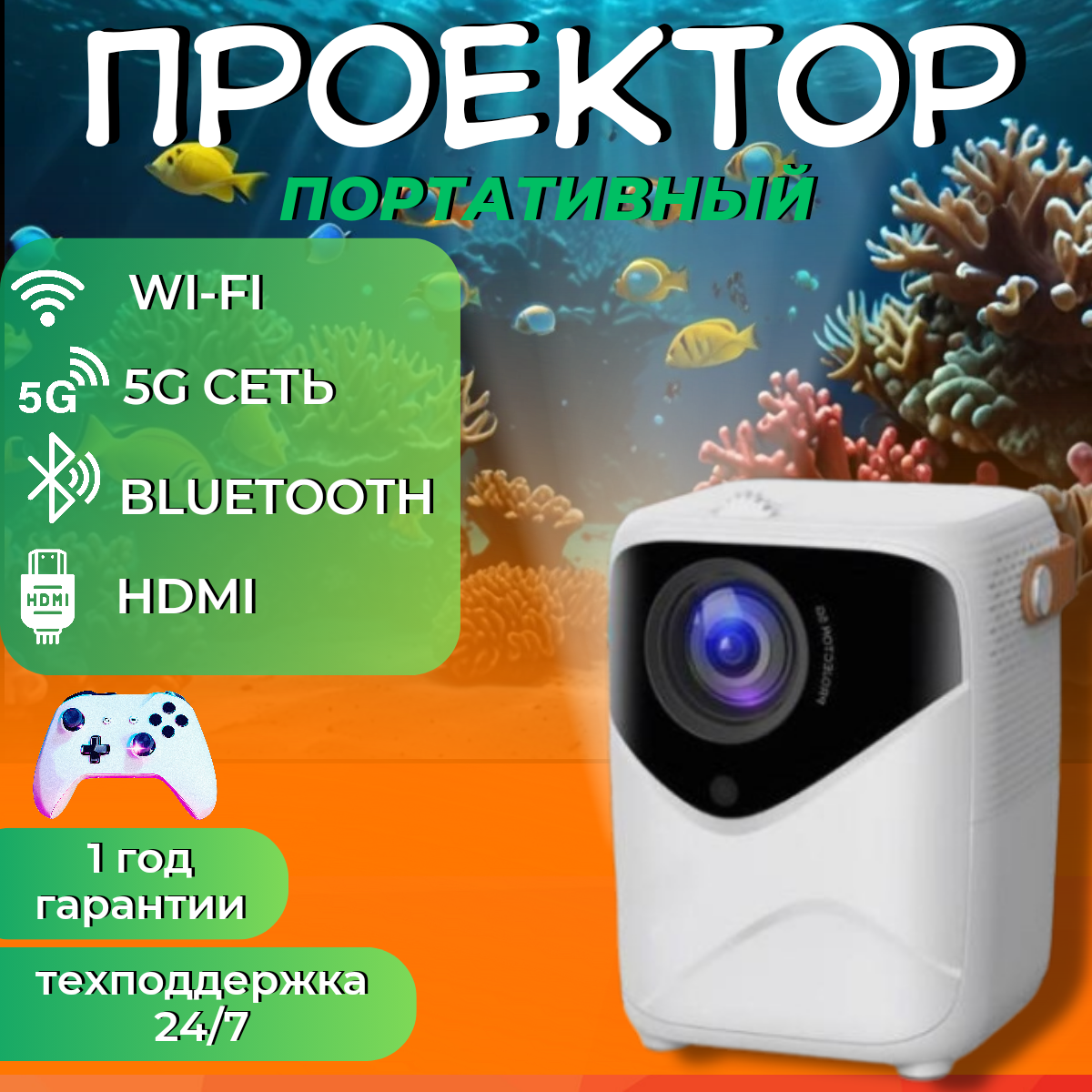 Мини проектор 4К с высоким разрешением 1920х1080 для фильмов и мультфильмов