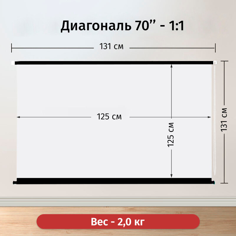 Экран для проектора Лама рулонный 125x125 см, формат 1:1, диагональ 70" информация: