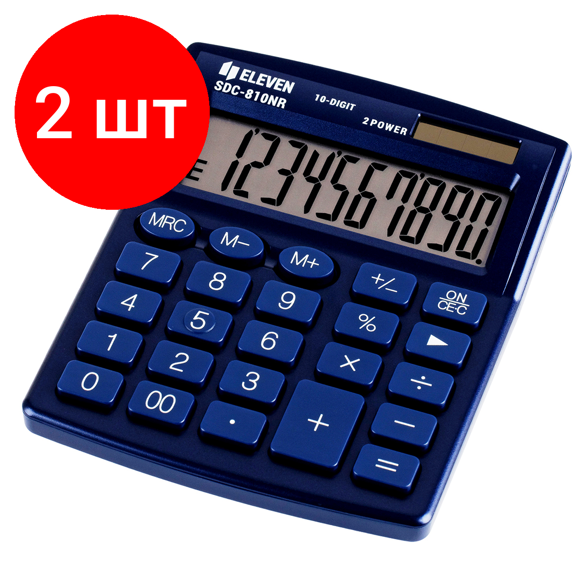 Комплект 2 шт, Калькулятор настольный Eleven SDC-810NR-NV, 10 разрядов, двойное питание, 127*105*21мм, темно-синий информация: