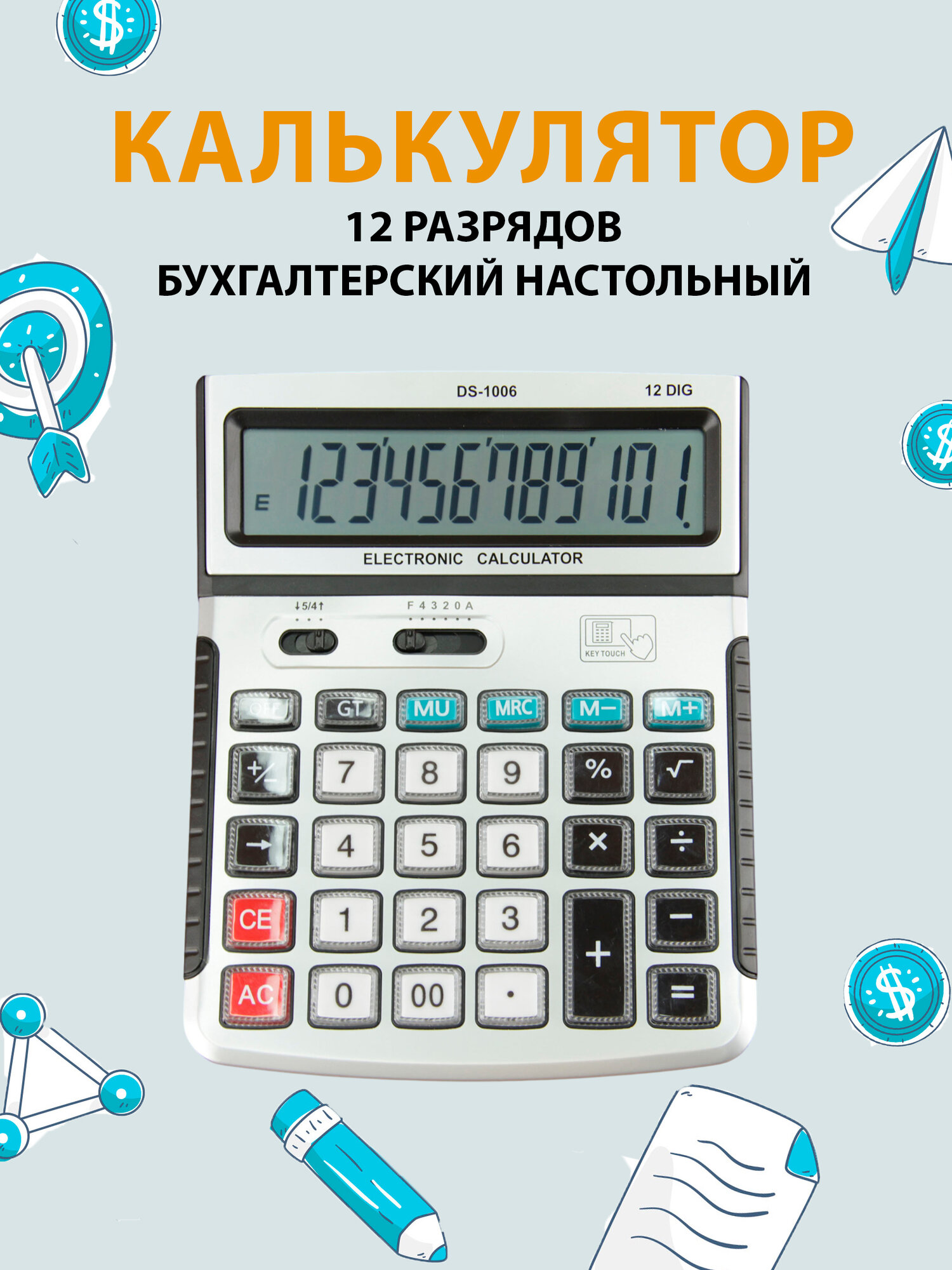 10 цен на Калькулятор настольный бухгалтерский электронный 12 разрядов, DS-1006
