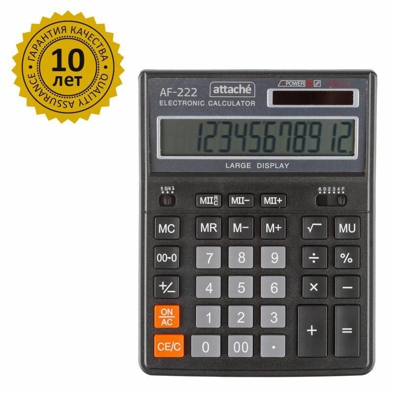 10 цен на Калькулятор настольный Attache AF-222 12-разрядный черный 203x158x40 мм