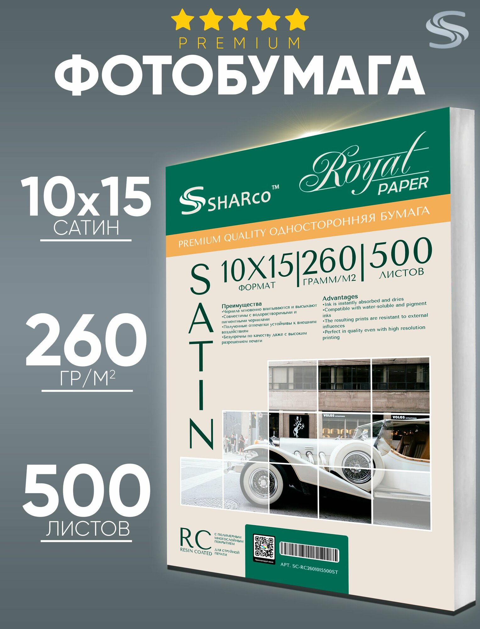 10 цен на Фотобумага премиум класса Sharco сатиновая 10х15, 260г, 500 листов Hight Glossy Photo Paper