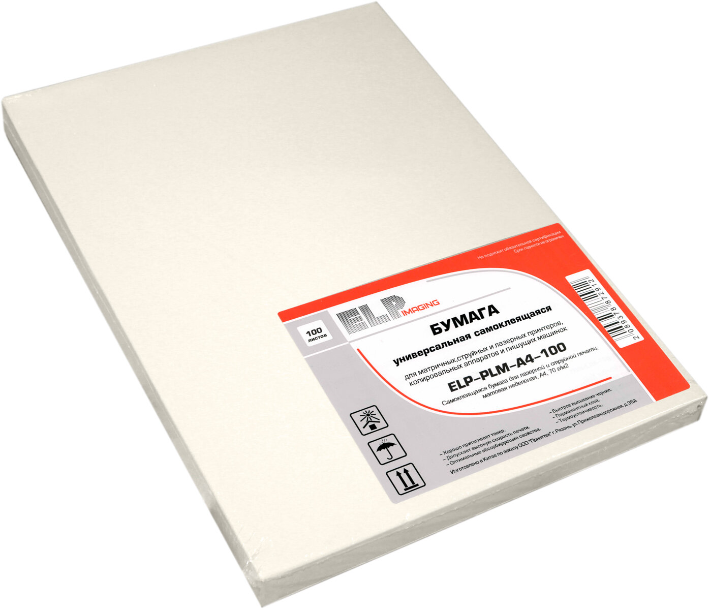 Самоклеящаяся бумага ELP A4, 100 листов белая, матовая, универсальная, 70 г/м2, для этикеток (ELP-PLM-A4-100) информация: