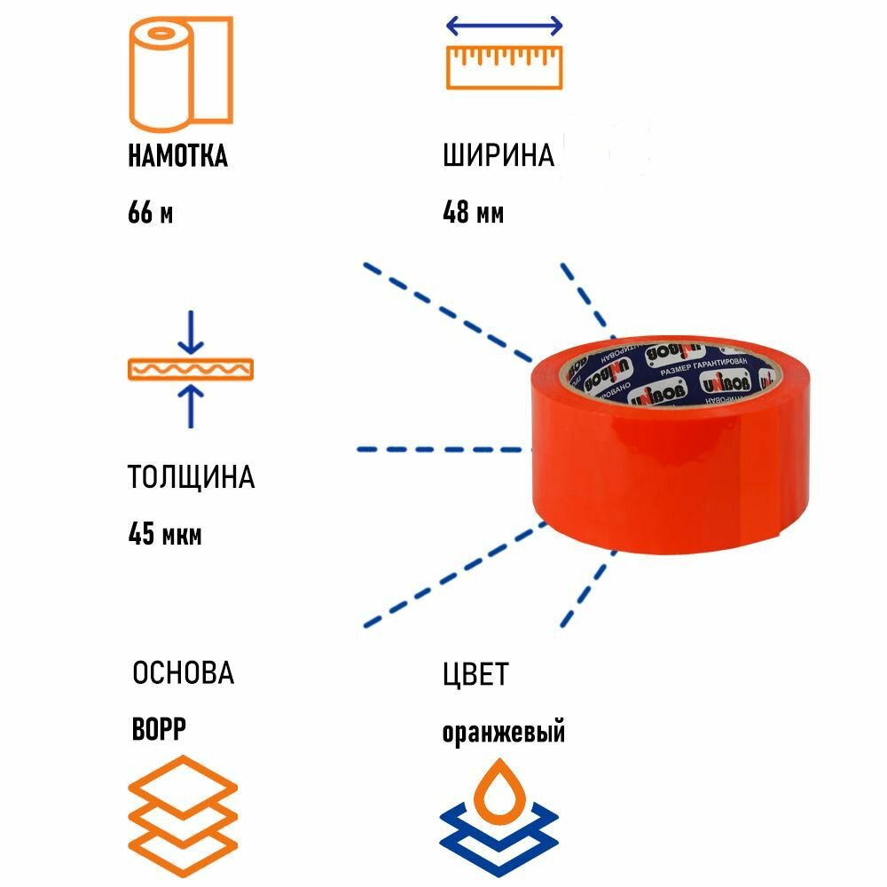 Клейкая лента упаковочная Unibob 600 оранжевая 48 мм х 66 м, толщина 45 мкм, 1 шт информация:
