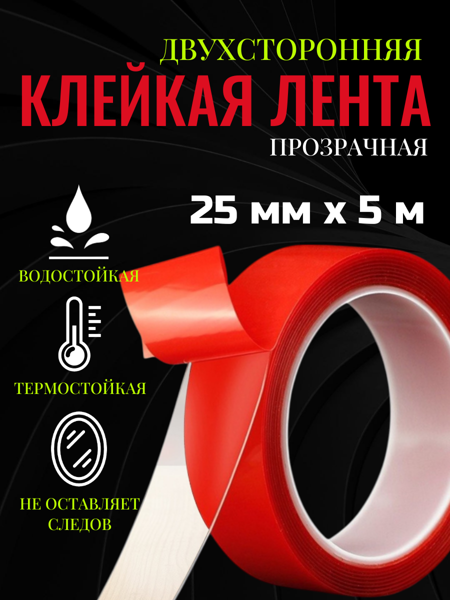 10 цен на Клейкая лента прозрачная, двусторонняя, акриловая, 25 мм х 5 м
