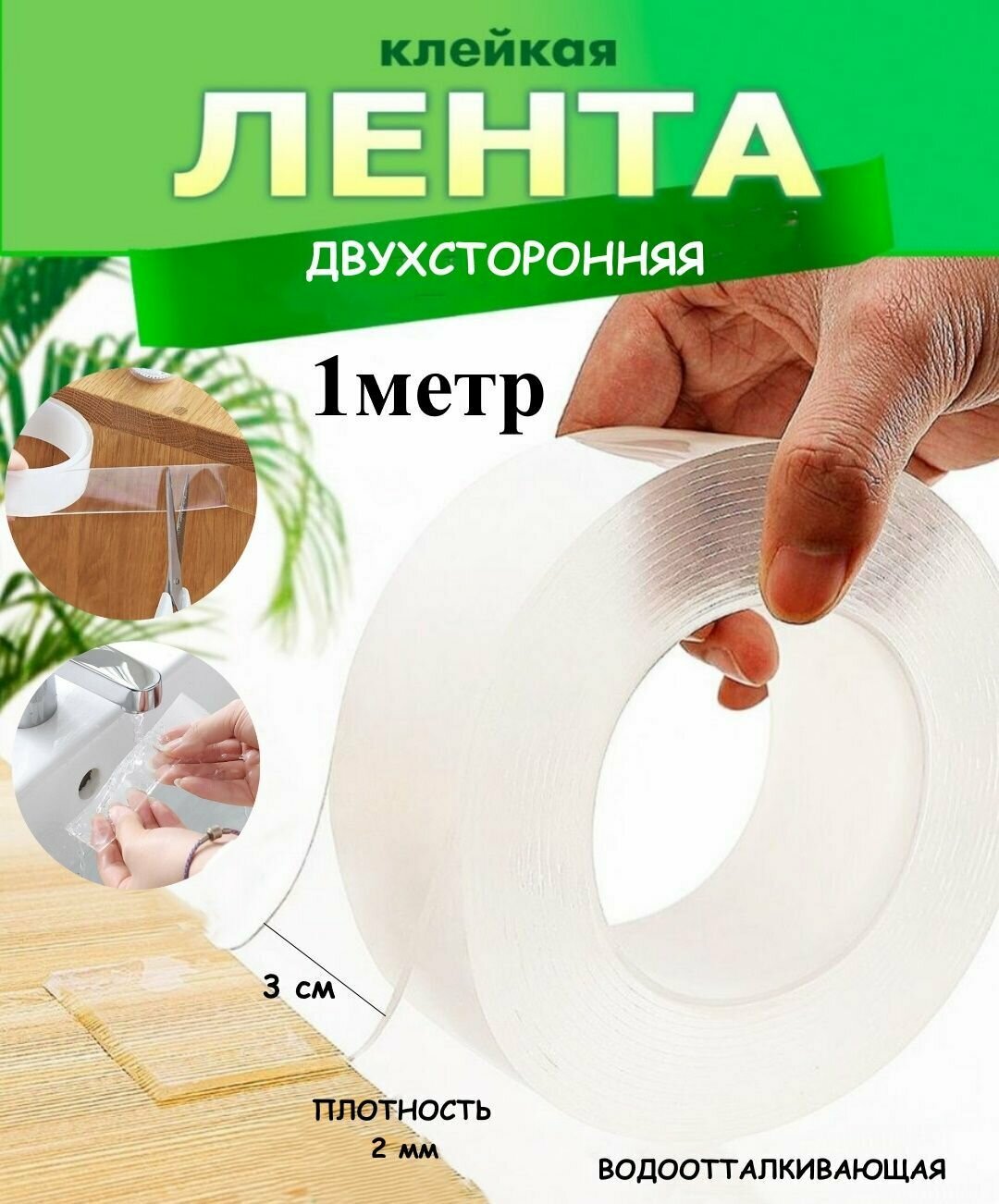 Отзывы на Двухсторонняя клейкая лента 1 метр Ю3-18, прозрачная, канцелярская, многоразовая, крепежный силиконовый скотч