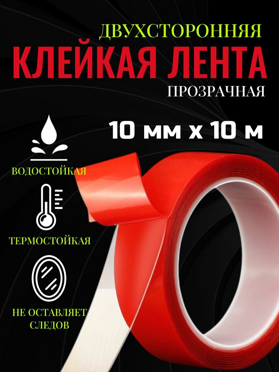 Клейкая лента прозрачная, двусторонняя, акриловая, 10 мм х 10 м информация: