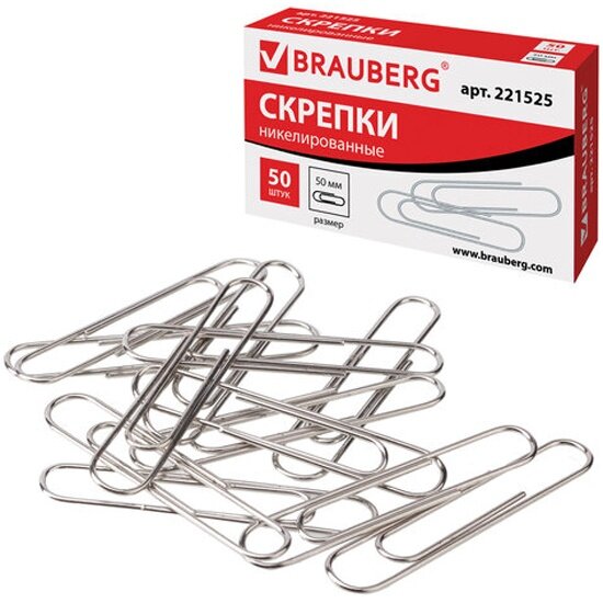 Скрепки Brauberg большие 50 мм, , никелированные, 50 шт, в картонной коробке информация: