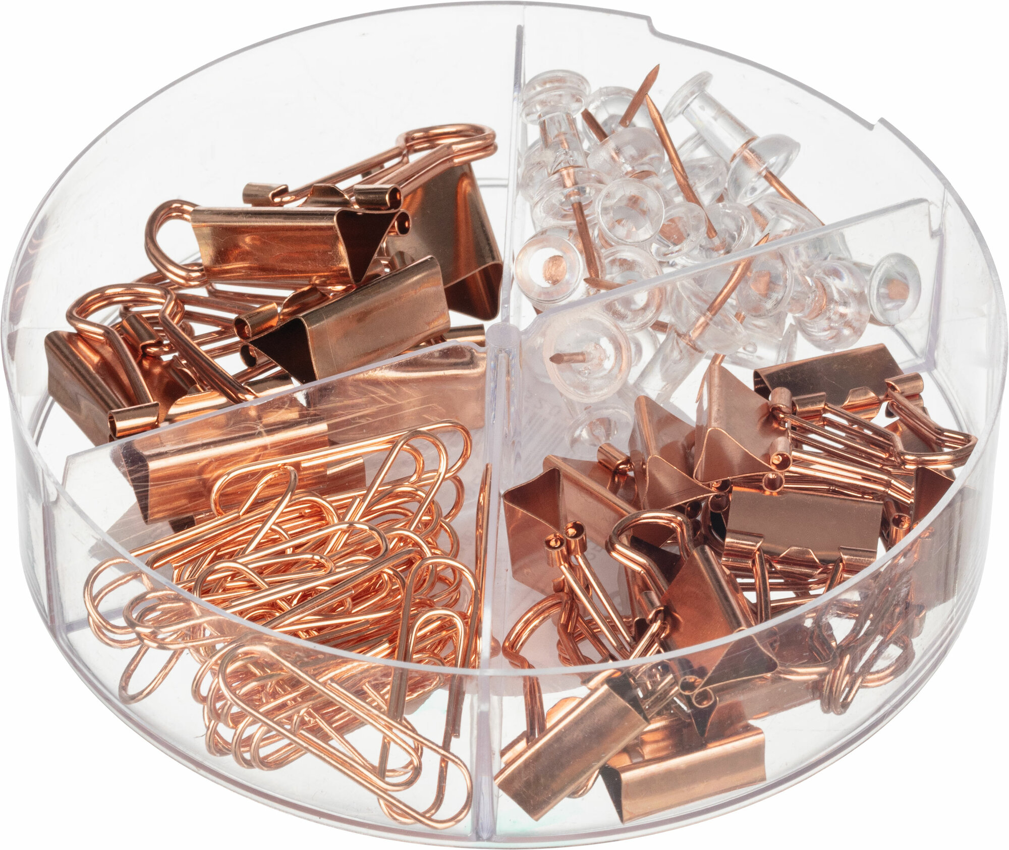 10 цен на Набор канцелярский Deli 78553,4отд.(кнопки, скрепки, зажимы), роз. зол