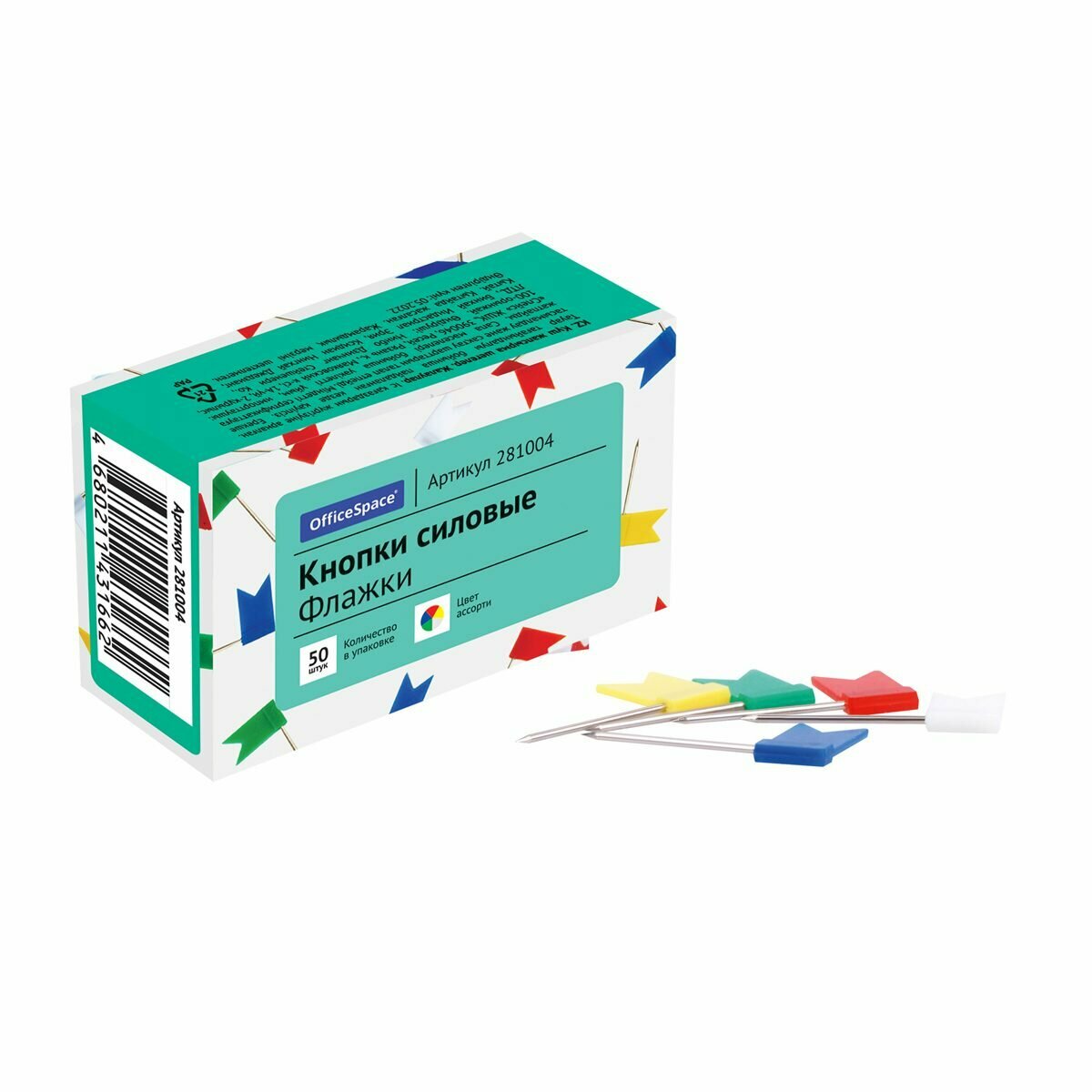 Кнопки силовые/флажки OfficeSpace, цветные, 50шт, картонная упаковка (281004) информация: