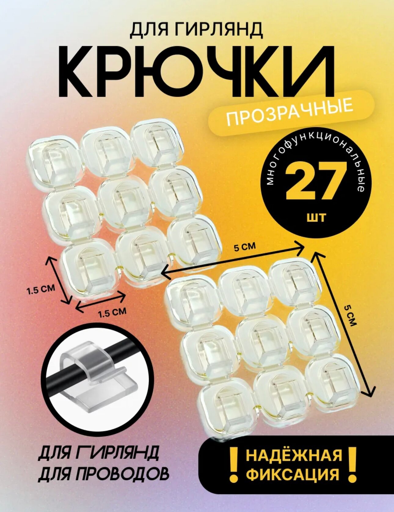10 цен на Прозрачные Крючки для гирлянд самоклеящиеся , 27 штук