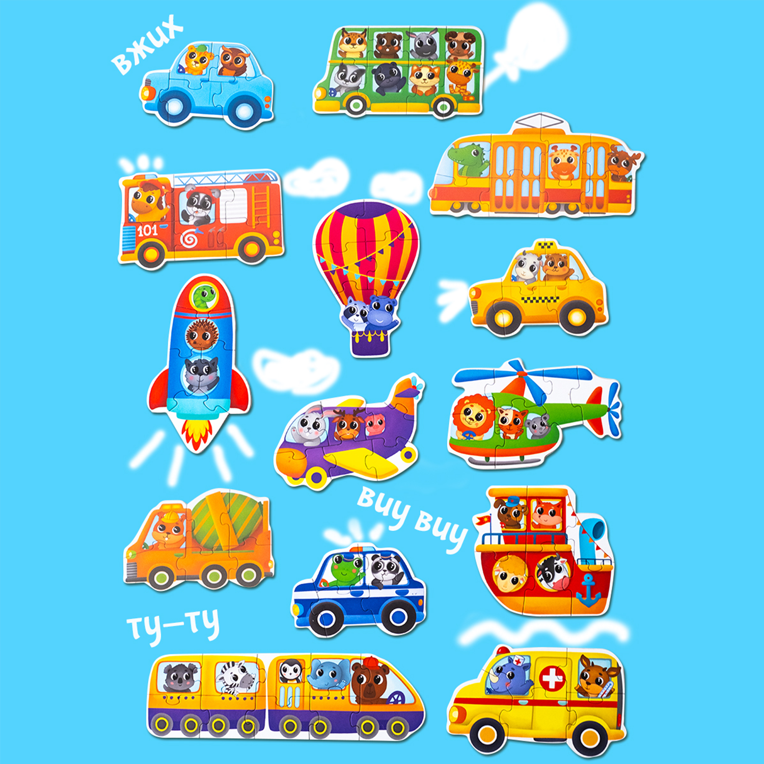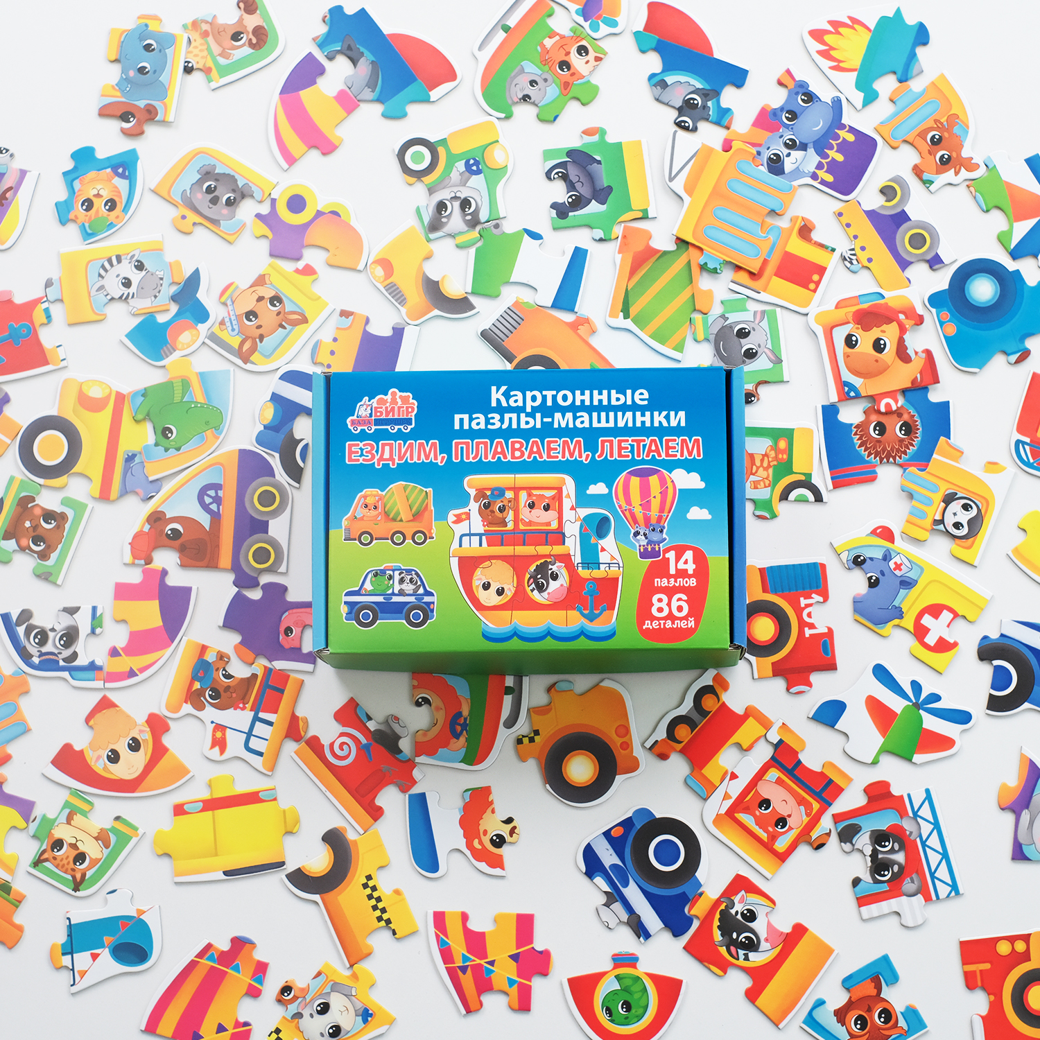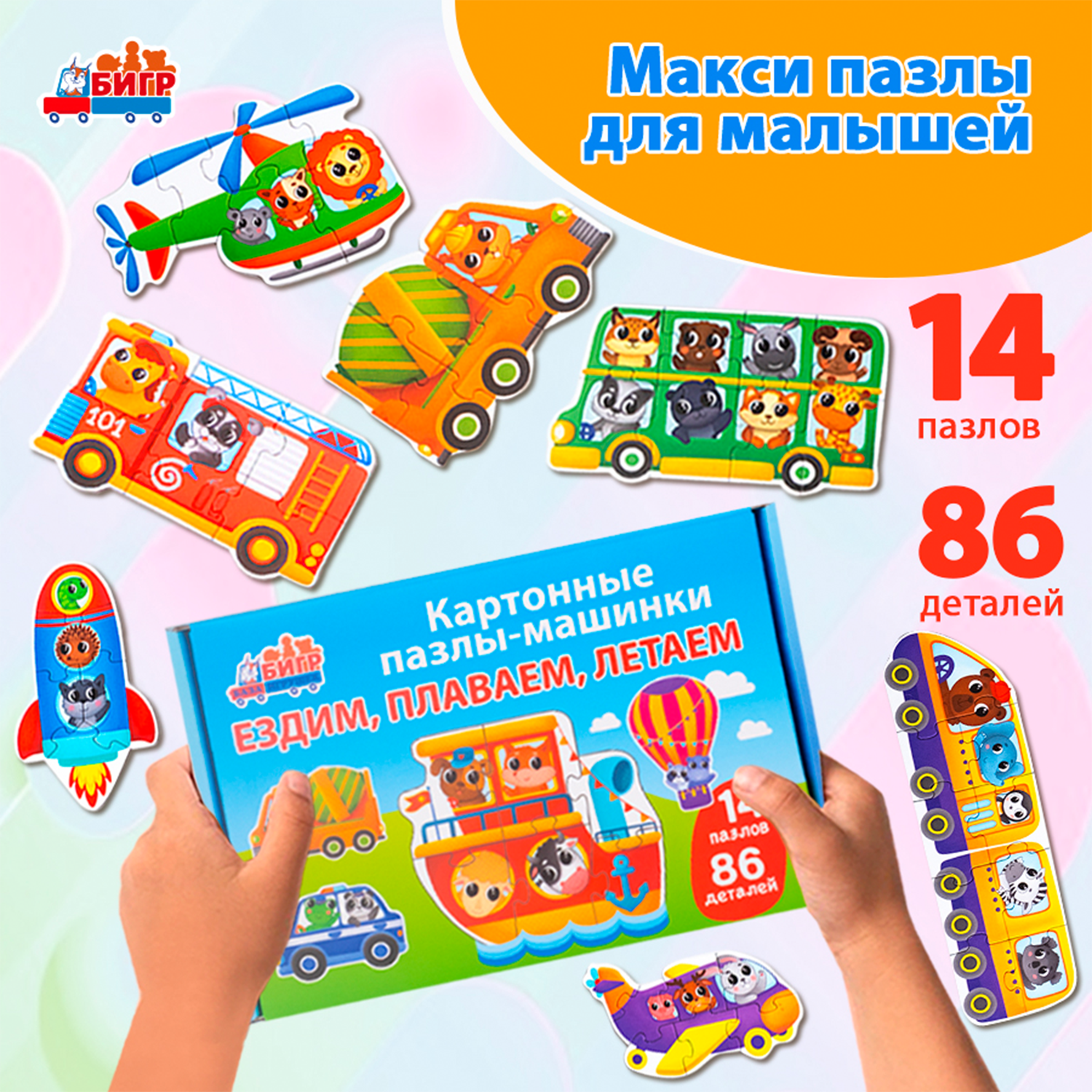 Картонные пазлы-машинки Бигр "Ездим, плаваем, летаем", УД138 информация: