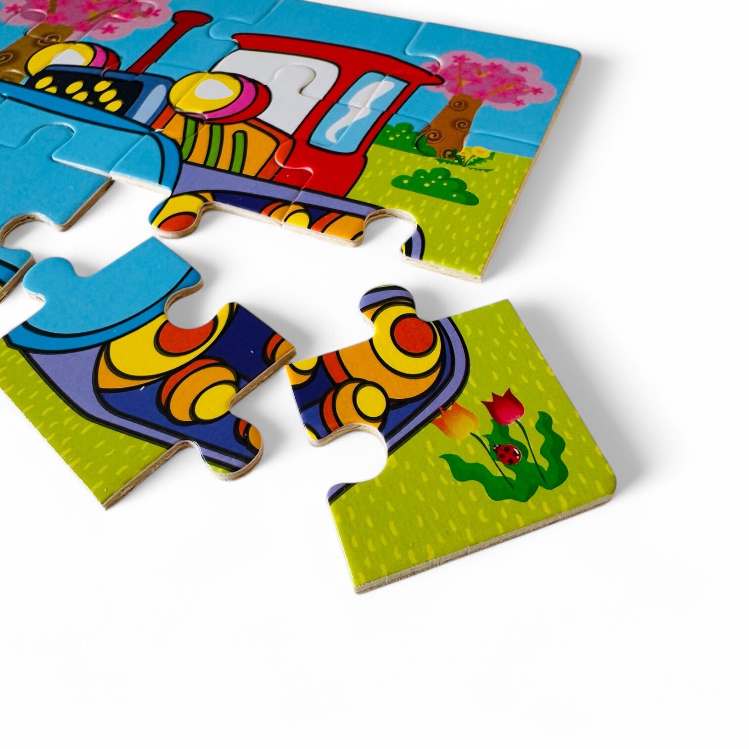 Пазлы деревянные в рамке ТРАКТОР, 12 элементов, 17х15 см, для детей от 1 года информация:
