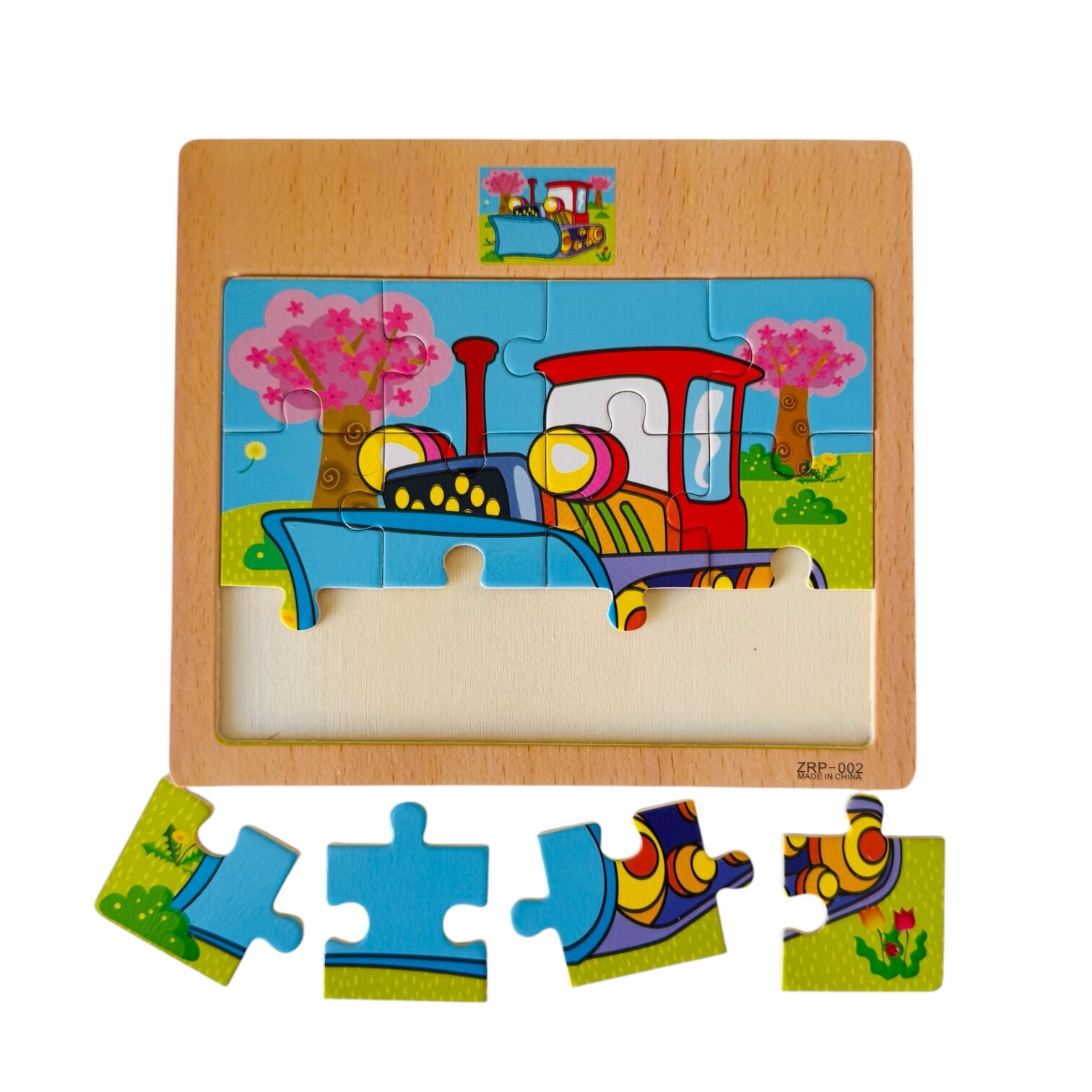 Пазлы деревянные в рамке ПОЕЗД, 12 элементов, 15х15 см, для детей от 1 года 220 ₽
