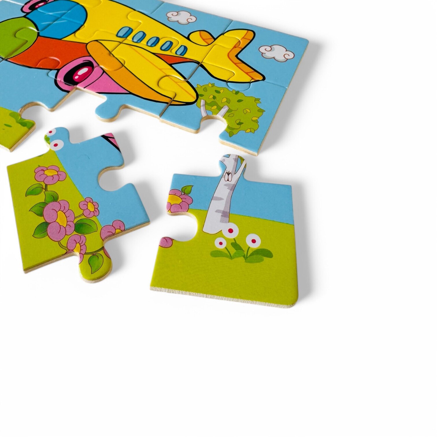 Пазлы деревянные в рамке САМОЛЕТ, 12 элементов, 17х15 см, для детей от 1 года информация: