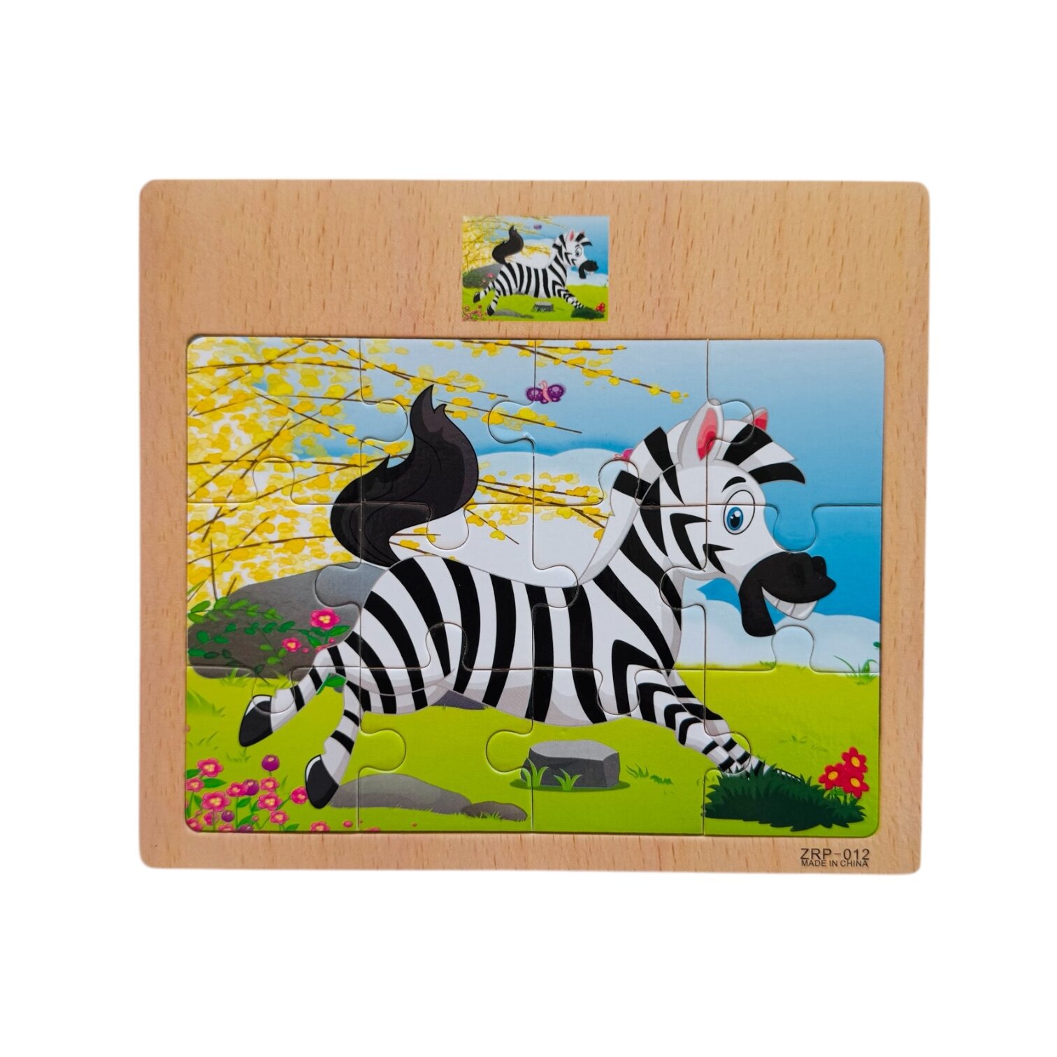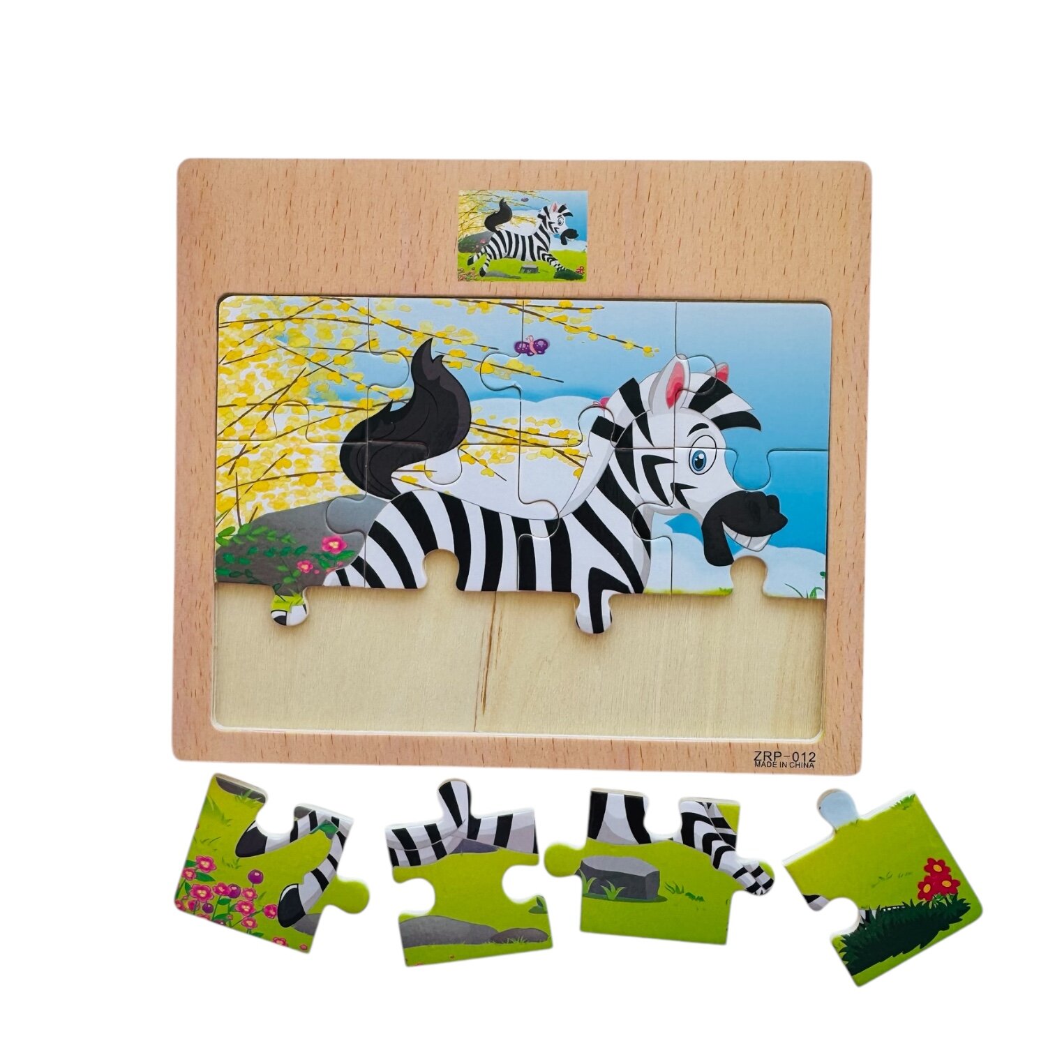 Пазлы деревянные в рамке ЗЕБРА, 12 элементов, 17х15 см, для детей от 1 года информация: