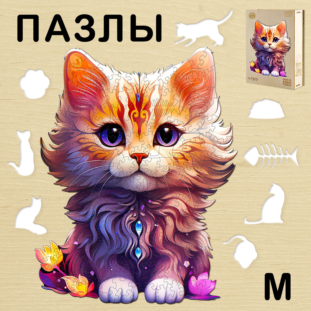 Деревянный 3D пазл Woodbests Фэнтези кэт M / 22 x 28 см / 190 деталей информация:
