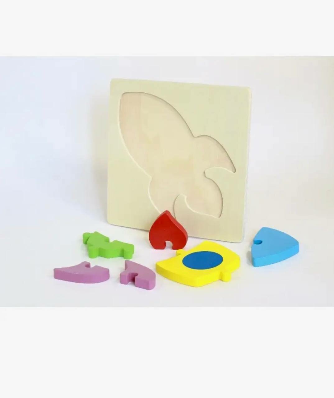 10 цен на Деревянные пазлы для малышей, сортер развивающий, 7 элементов, ракета