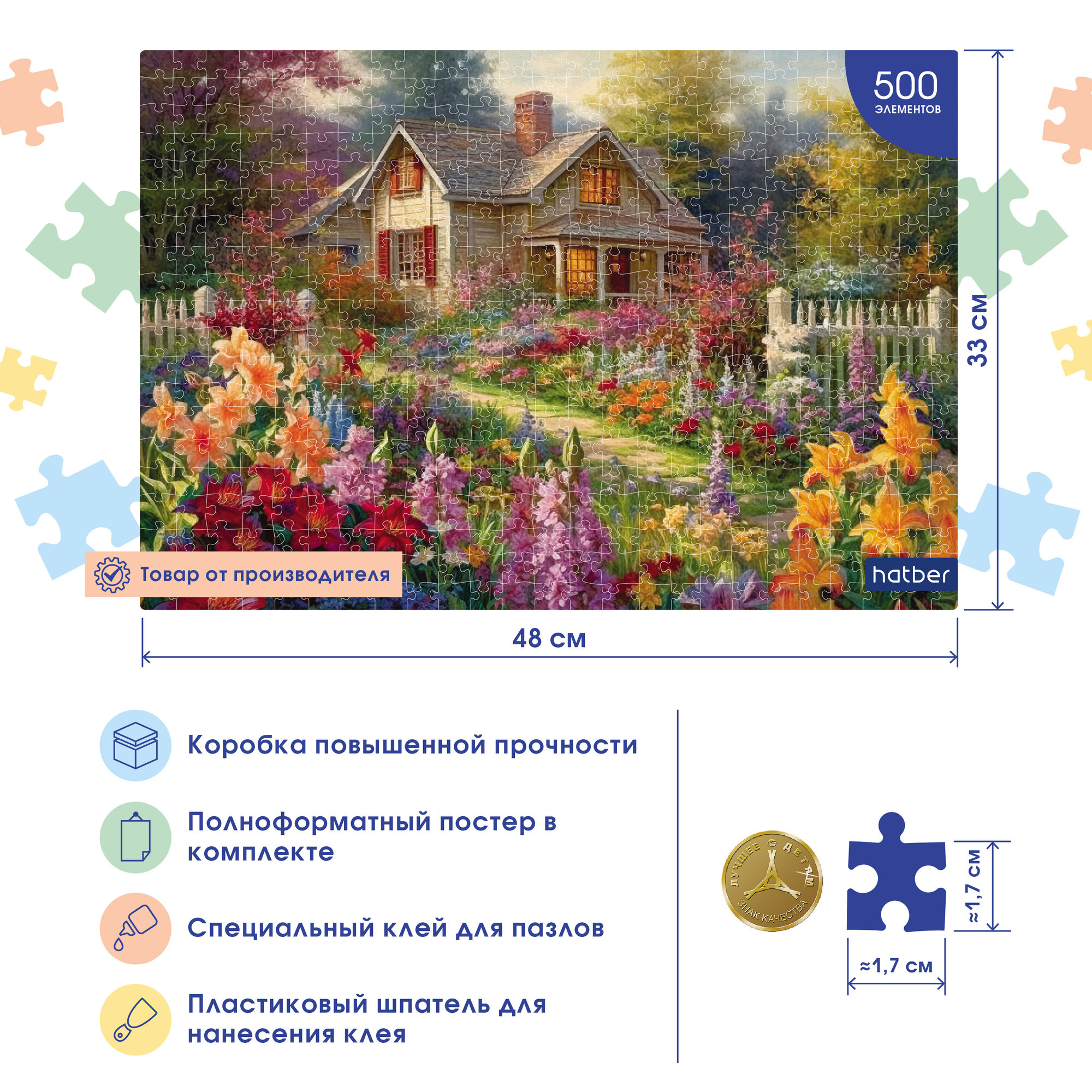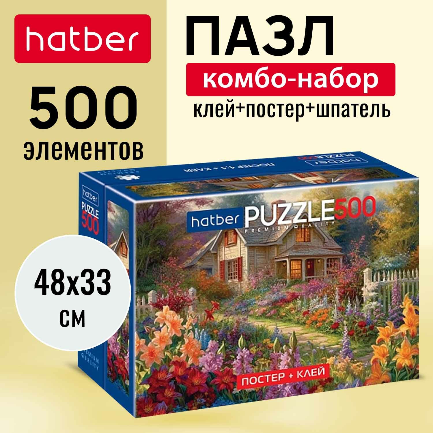 Пазл "Premium" Комбо-Набор 500 элементов 480х330 мм -Любимая дача- + Постер + Клей с дозатором 85г + шпатель информация: