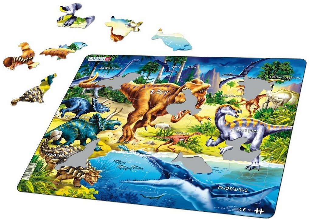 10 цен на Пазлы для детей Larsen "Динозавры", 57 деталей, размер 36,5х28,5 см