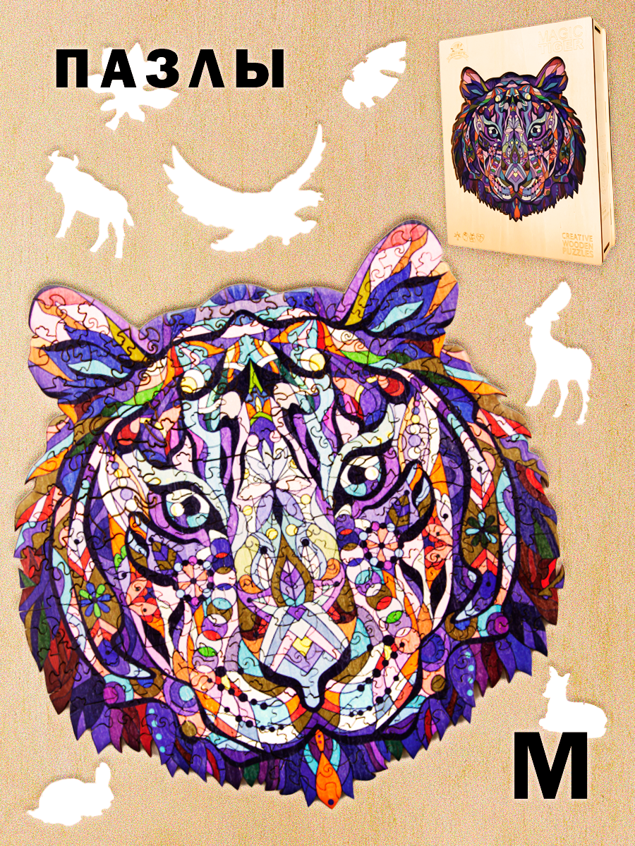 10 цен на Деревянный 3D пазл Woodbests 6136-WP Волшебный Тигр, размер M
