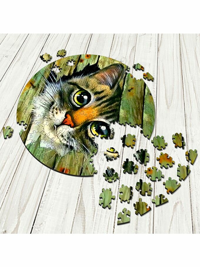 10 цен на Деревянный пазл картина на стену Котик в заборе 169 деталей 30х30см