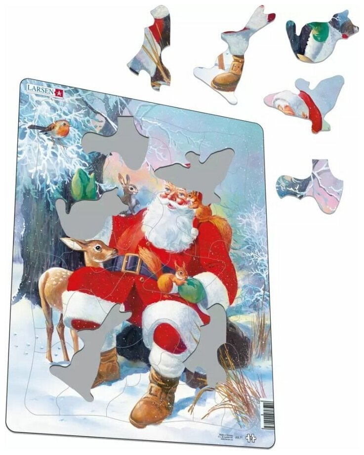 Детские новогодние Пазлы Larsen "Санта с животными", 32 элемента, JUL7 информация:
