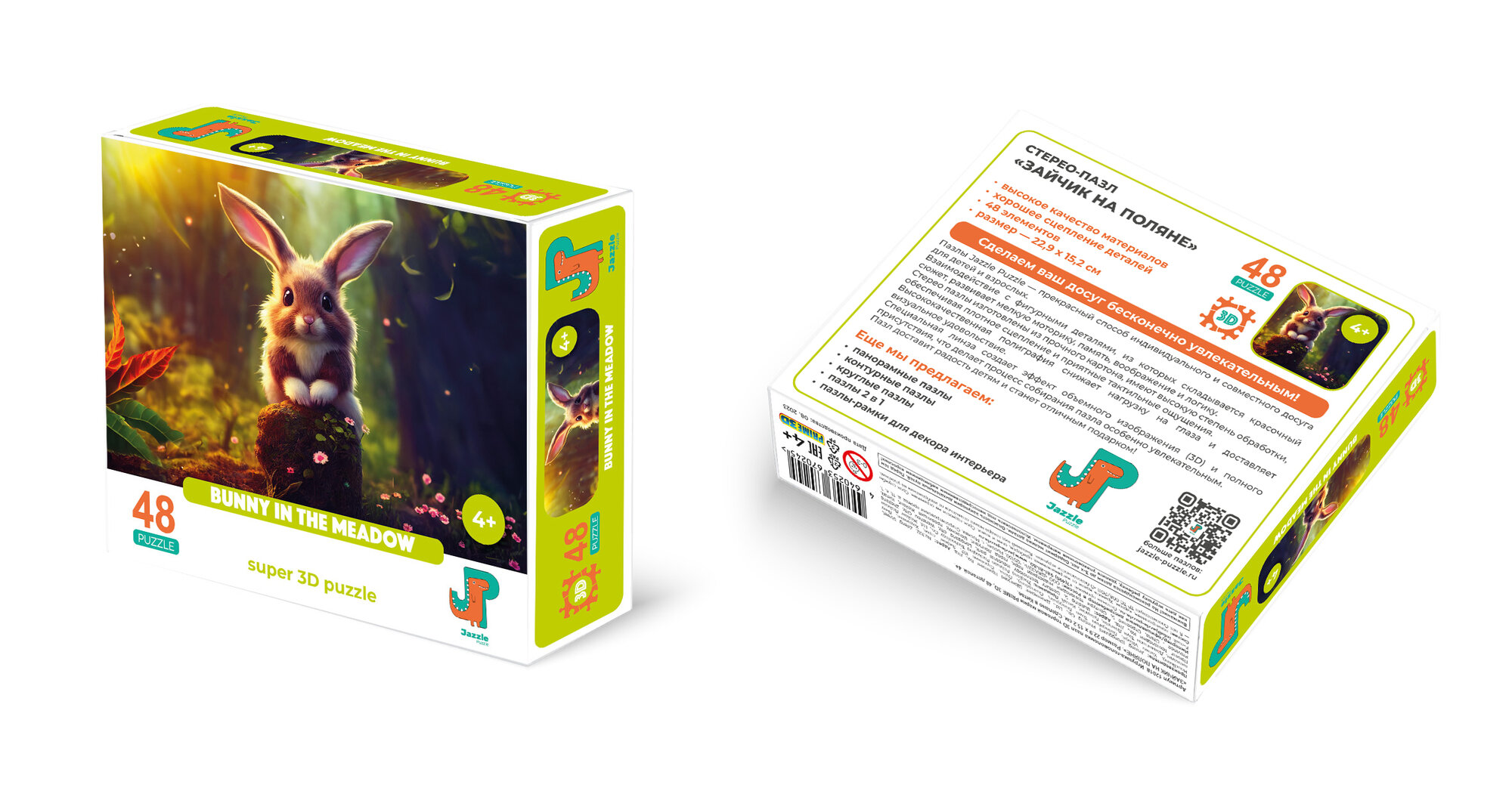 "Зайчик на поляне". Игрушка-головоломка пазл 3D, 48 элементов т. м. PRIME 3D Артикул 12018 Возраст 4+ информация: