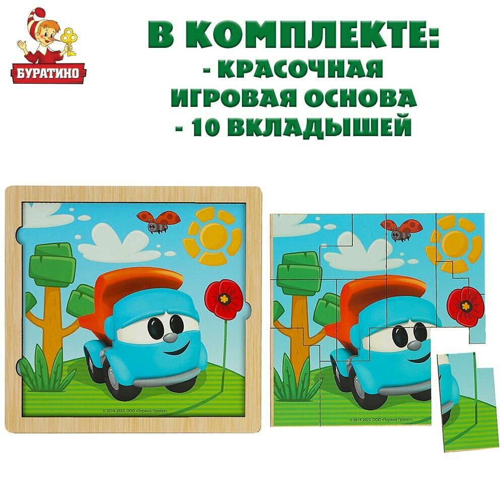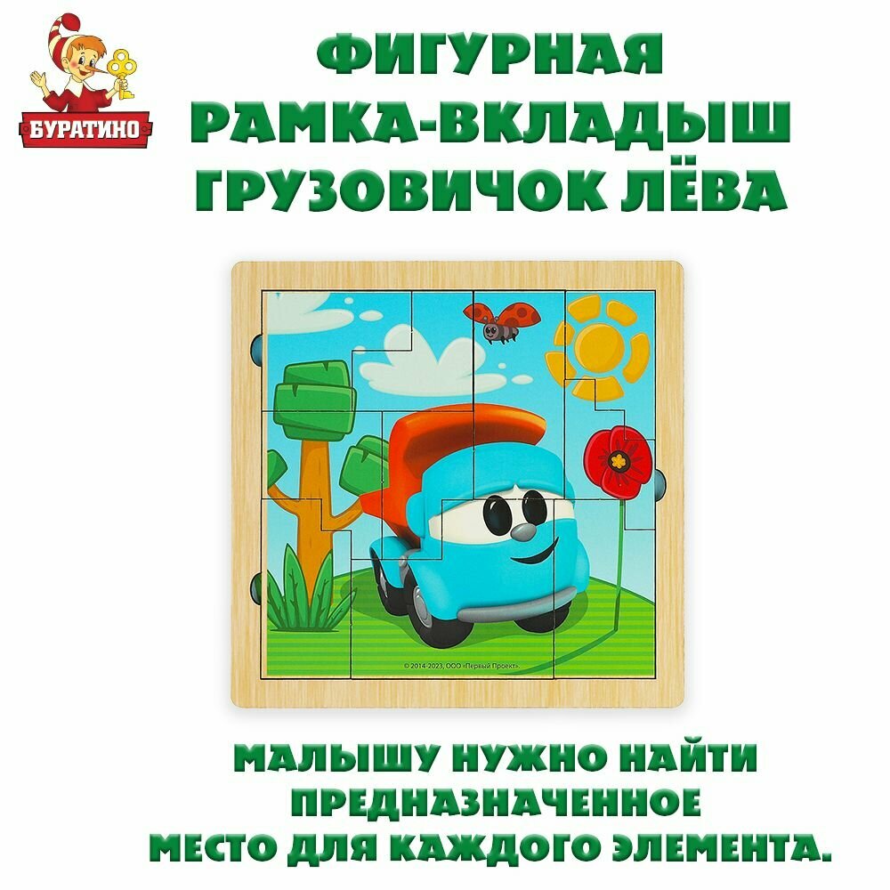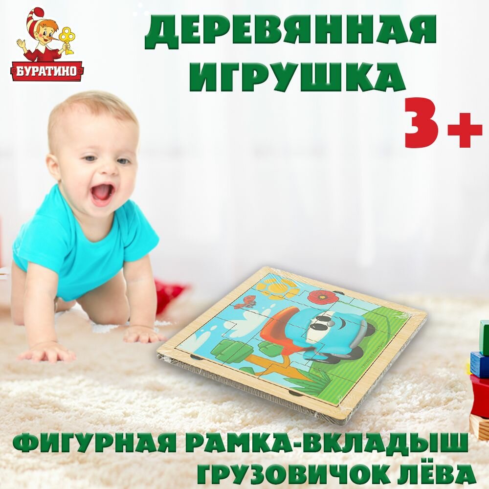 Деревянные развивающие пазлы для малышей / рамка вкладыш с ручками Грузовичок Лева Буратино информация: