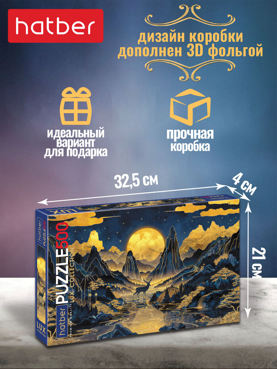Характиристики этого товара не найдены!Отзывы на Пазл Hatber Premium LUX 500 элементов 480х330 мм, матовая ламинация, 3D фольга -Лунная ночь-