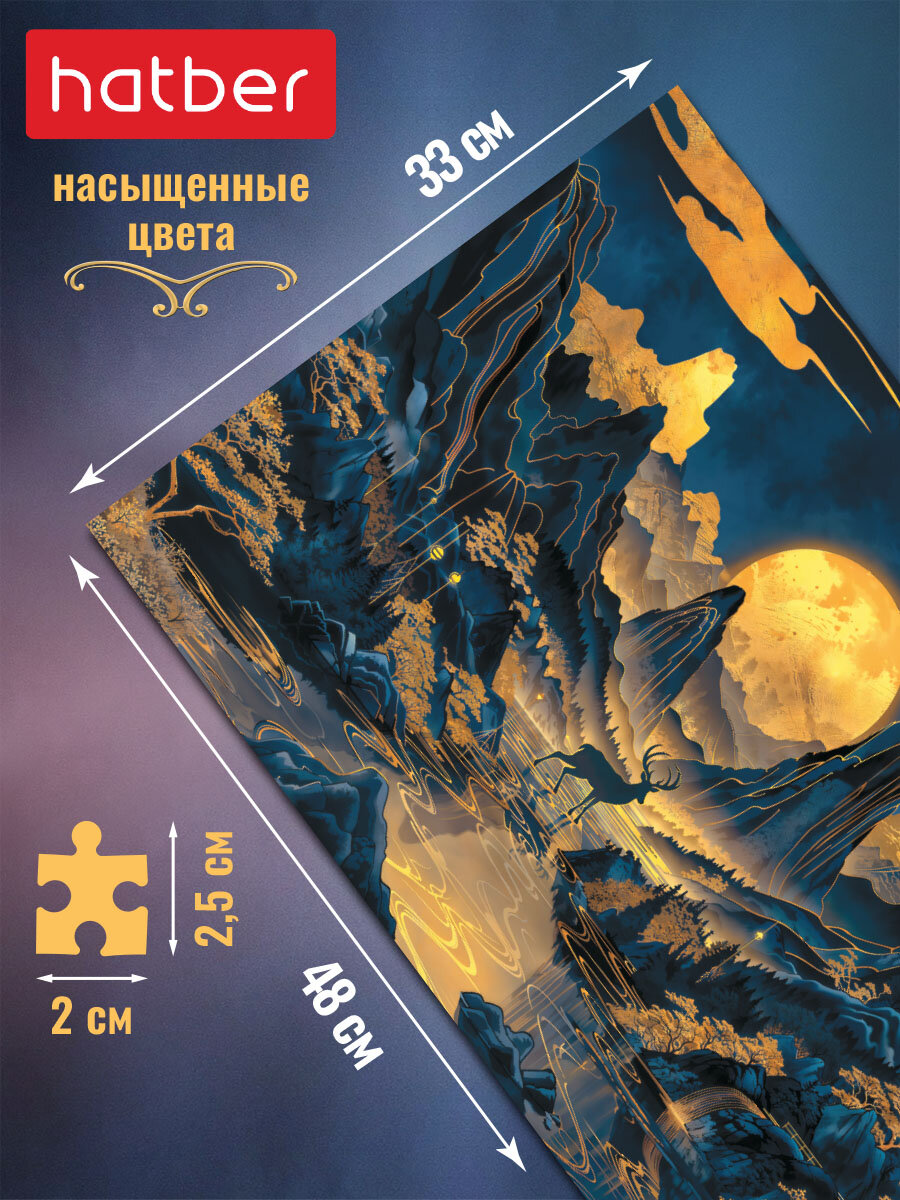 Пазл Hatber Premium LUX 500 элементов 480х330 мм, матовая ламинация, 3D фольга -Лунная ночь- информация: