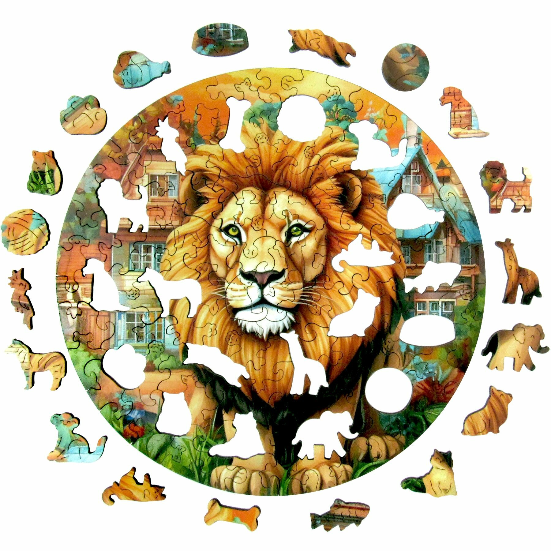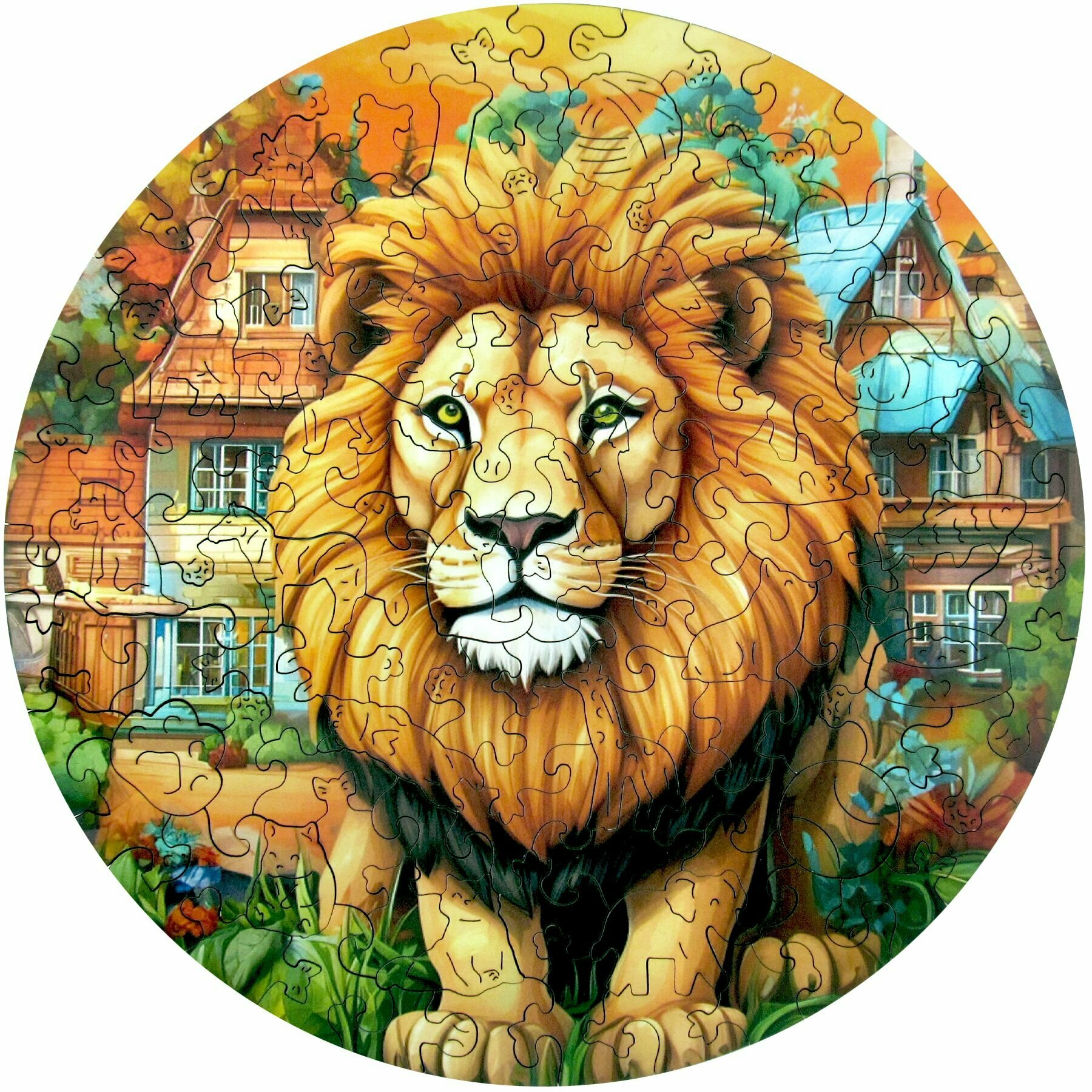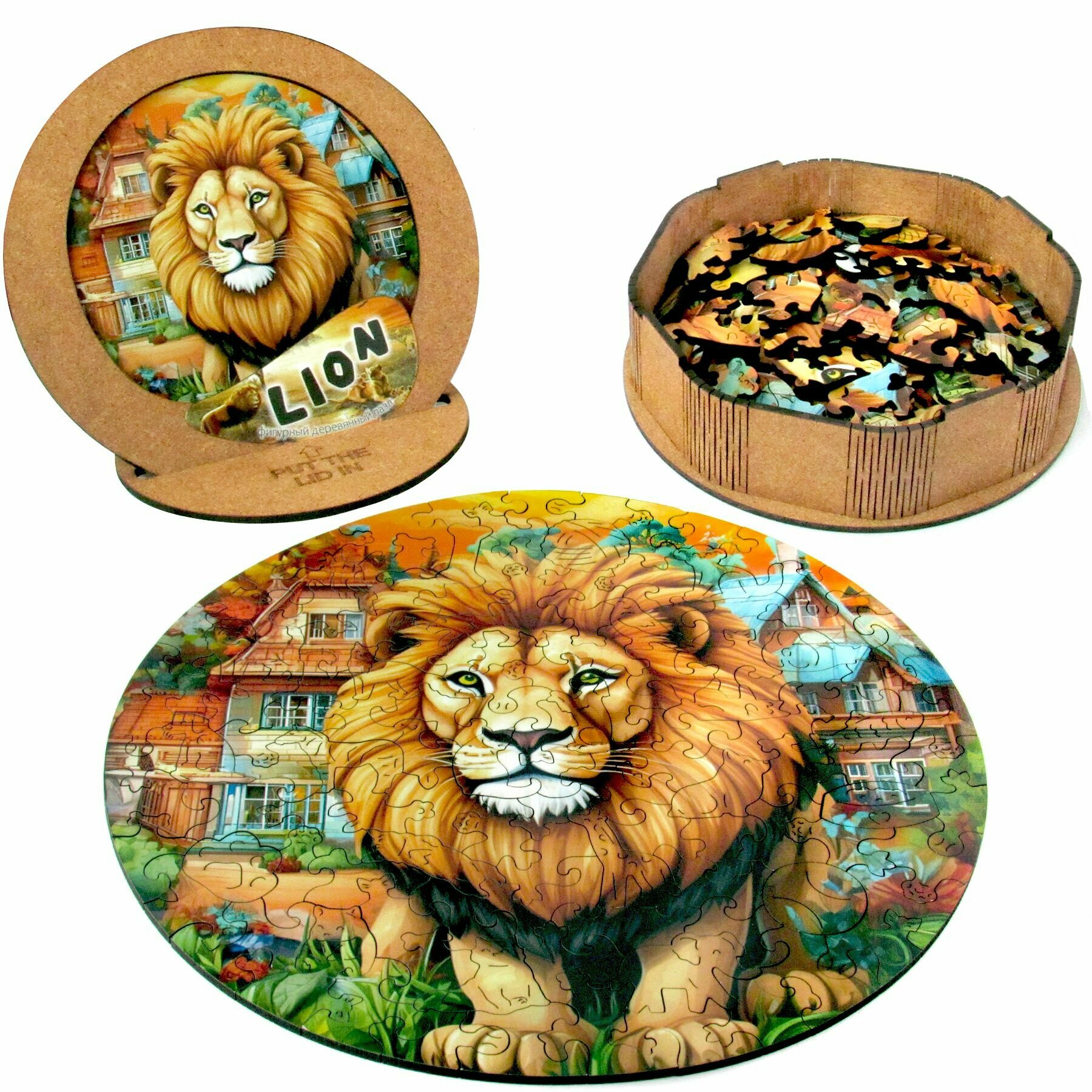 Деревянный пазл Лев LION, 120 деталей, дизайнерская фигурная сетка, для детей и взрослых информация:
