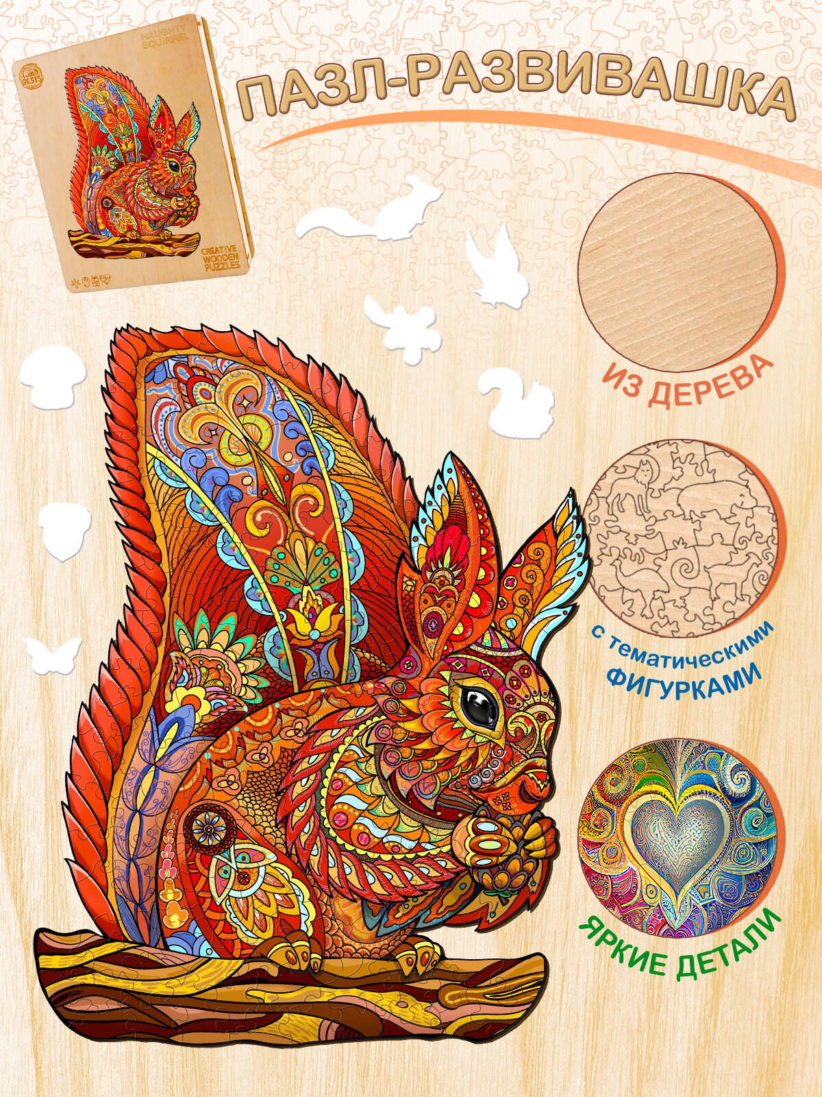 10 цен на Деревянный 3D пазл Woodbests 6167-WP Лесная Белка L