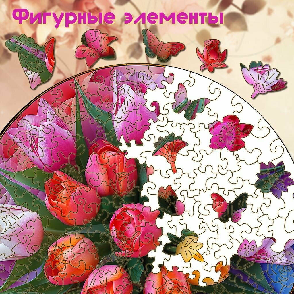 Деревянный пазл BoberBox "Мандала Тюльпаны", 224 деталей информация: