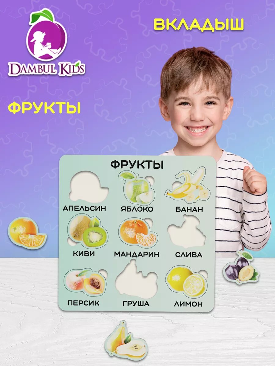10 цен на Деревянные пазлы для детей 2 3 4 лет пазл-вкладыш Фрукты