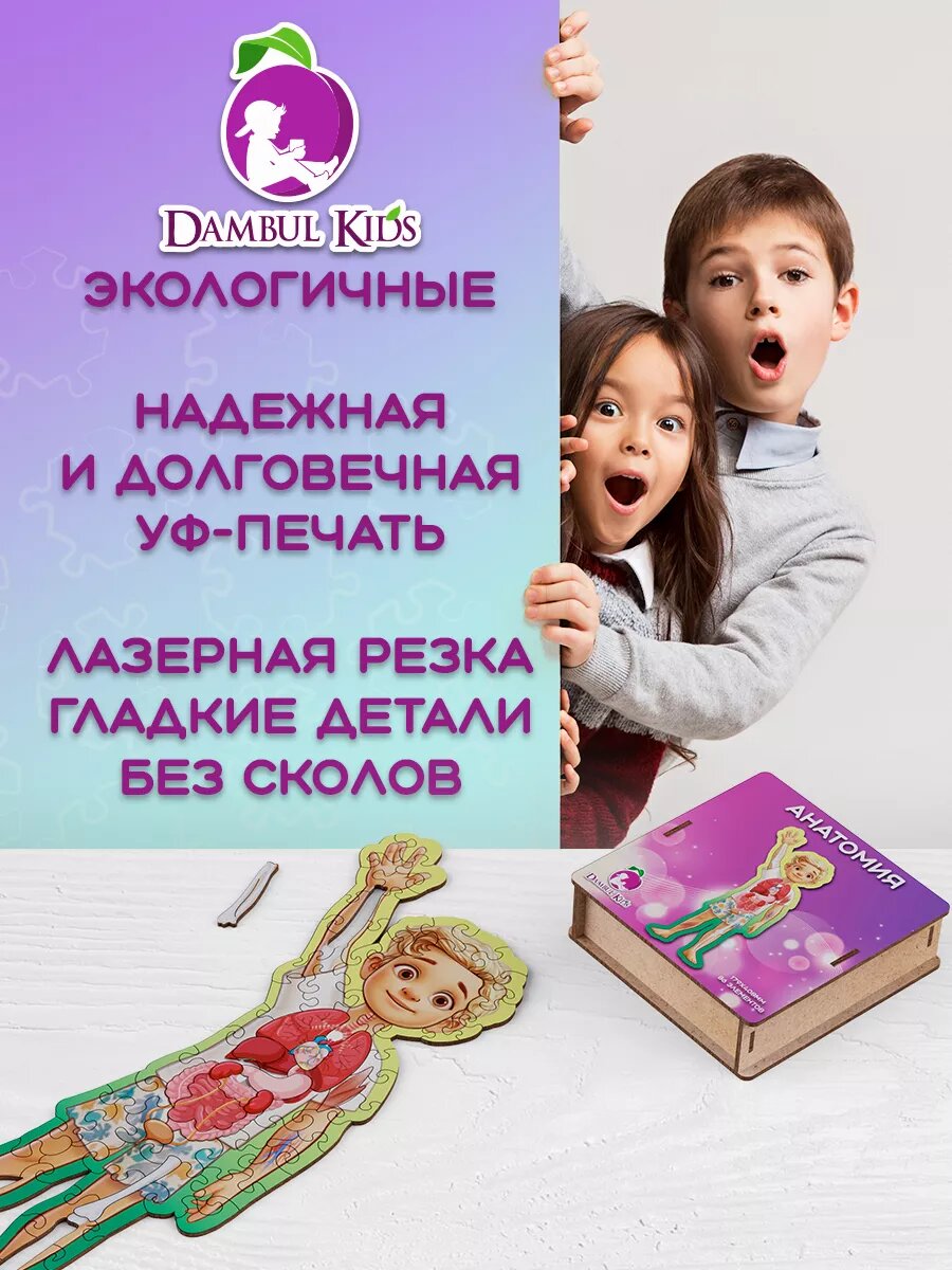10 цен на Деревянные пазлы для детей 2 3 4 лет пазл-вкладыш Анатомия