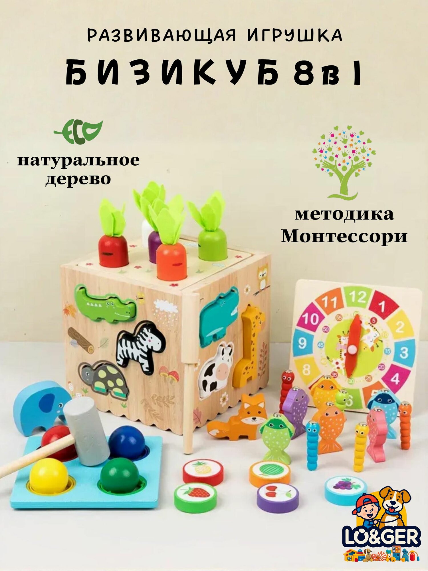 Развивающий деревянный Бизикуб 8в1 / Игрушки Монтессори / Сортер для детей информация: