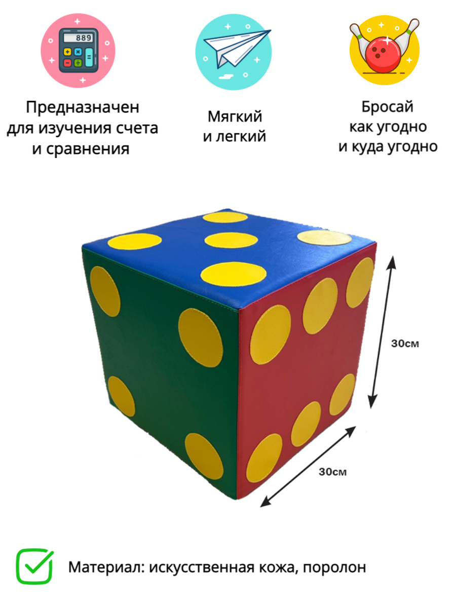 Мягкий игровой кубик "Бросай-ка" 30х30см, цветной, поролон/вик информация:
