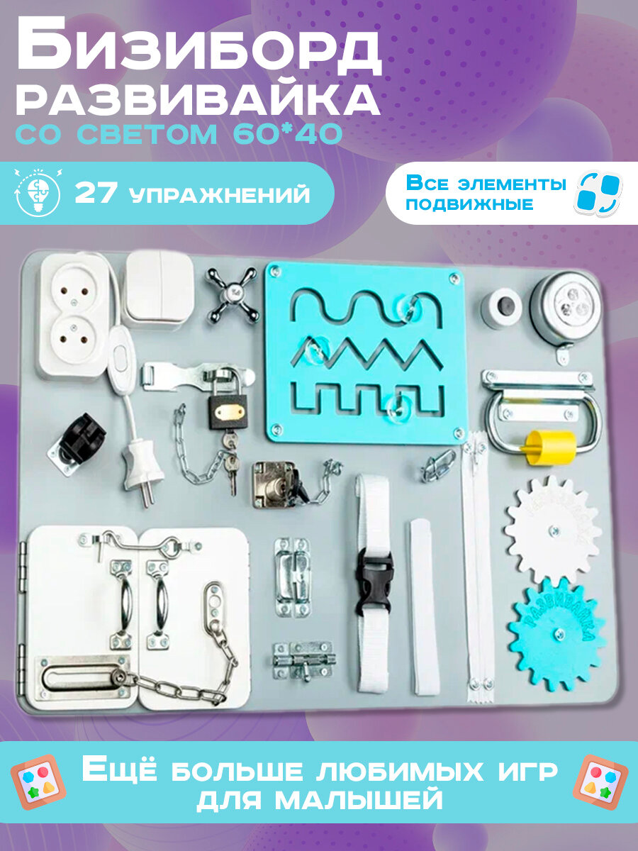 10 цен на Бизиборд "Мастерская бизибордов Развивайка" Стандарт 60х40 см со светом