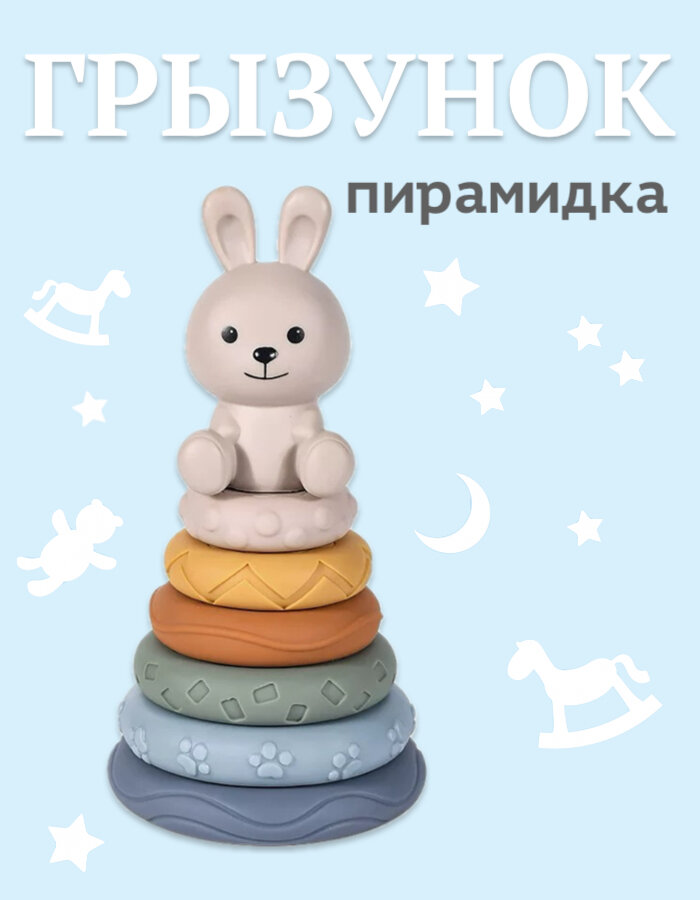 Отзывы на Пирамидка грызунок для малышей, развивающая игрушка, мягкая "Зайка"