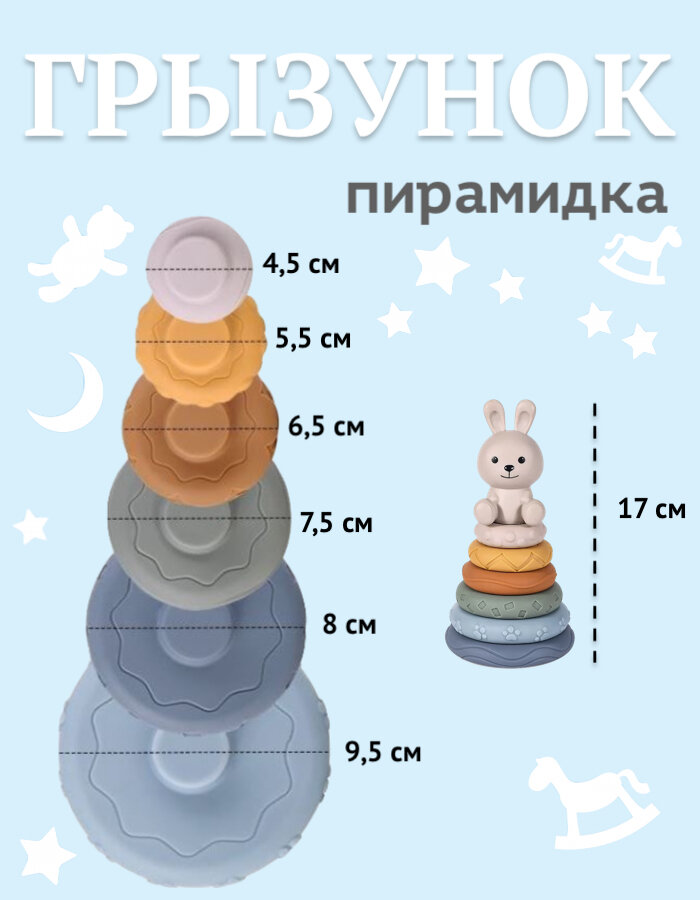 Пирамидка грызунок для малышей, развивающая игрушка, мягкая "Зайка" информация: