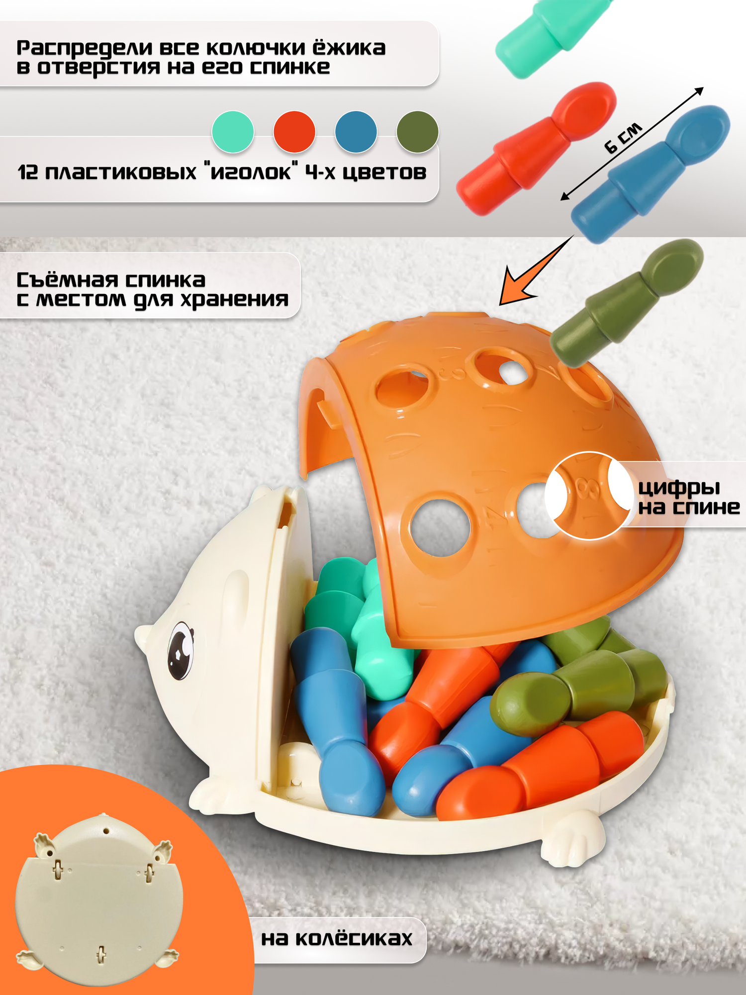 10 цен на Развивающая игрушка сортер Ежик для малышей, 15,5 х 14 х 9 см, 12 цветных иголок