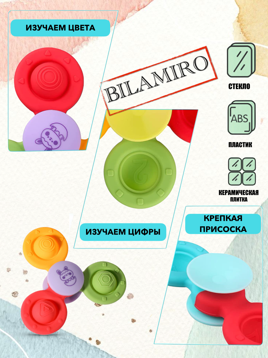 Отзывы на Спиннер-прорезыватель BILAMIRO "ПОП ИТ", силиконовый, на присоске, для детей, разноцветные