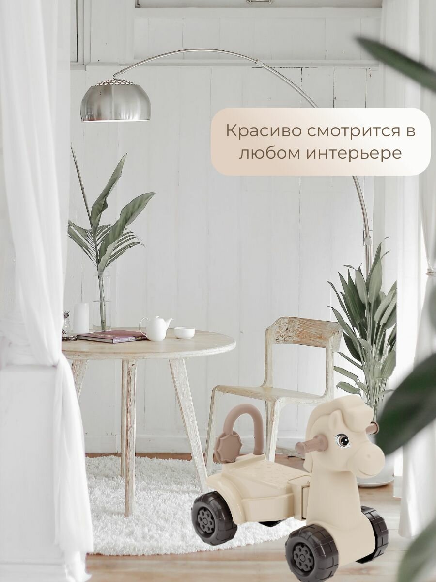 Лошадка-качалка-беговел ALEXCARE KIDS для детей, для дома и улицы, цвет молочный/серый