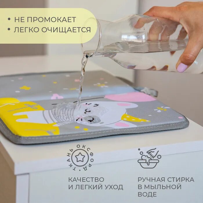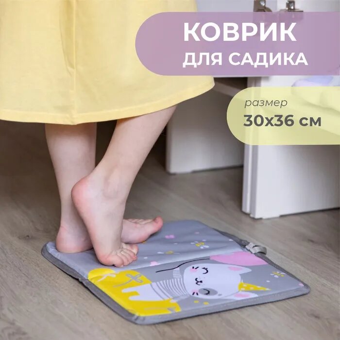 Отзывы на Коврик для переобувания Всё на местах складной антискользящий с принтом Котик серый 30х36 см