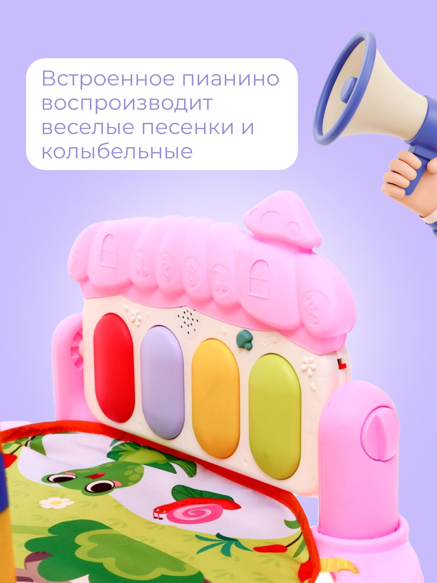 Музыкальный коврик ZABIAKA развивающий со звуком, розовый информация: